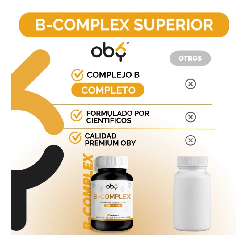 Complejo B Completo | Vitamina B12, B1, B2, B3, B5, B6, B7, B9 | Oby Complex-B Vitaminas B Pura Y Sin Rellenos | Vitaminas Mujer y Hombre 60 Cápsulas