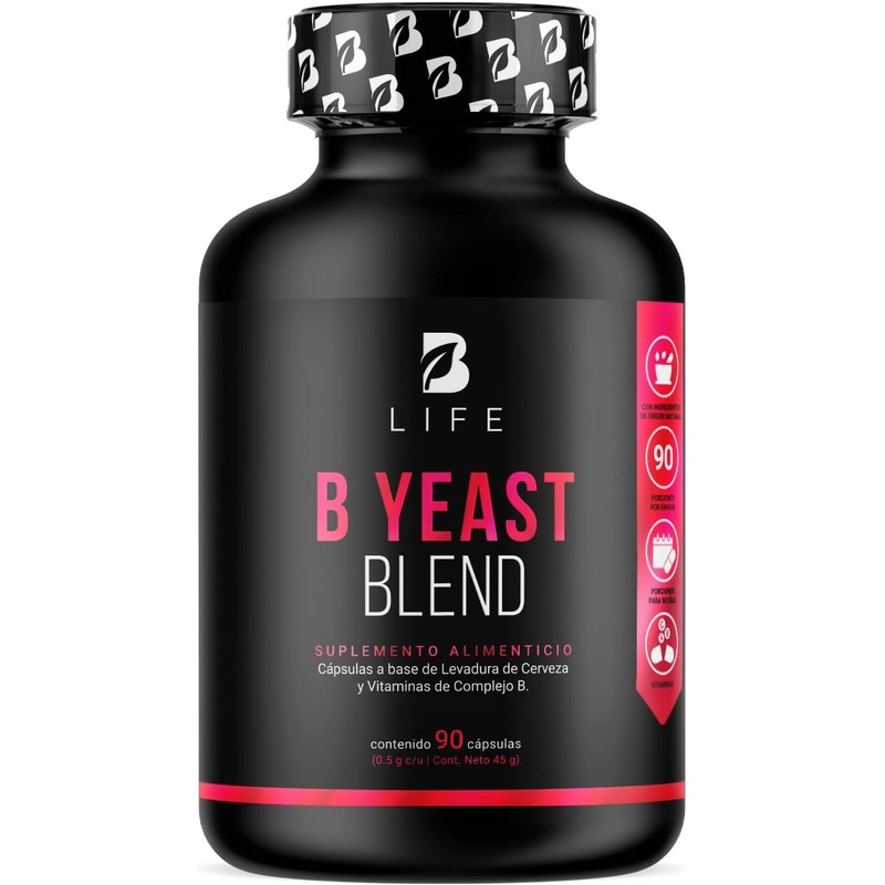 - ¡Disfruta la formulación de B Yeast Blend B Life! Cada cápsula de 500 mg está diseñada a base de Levadura de Cerveza y enriquecida con una increíble mezcla de Vitaminas, a diferencia de otras formulaciones que carecen de estos componentes valiosos para tu bienestar. Contiene 90 cápsulas.