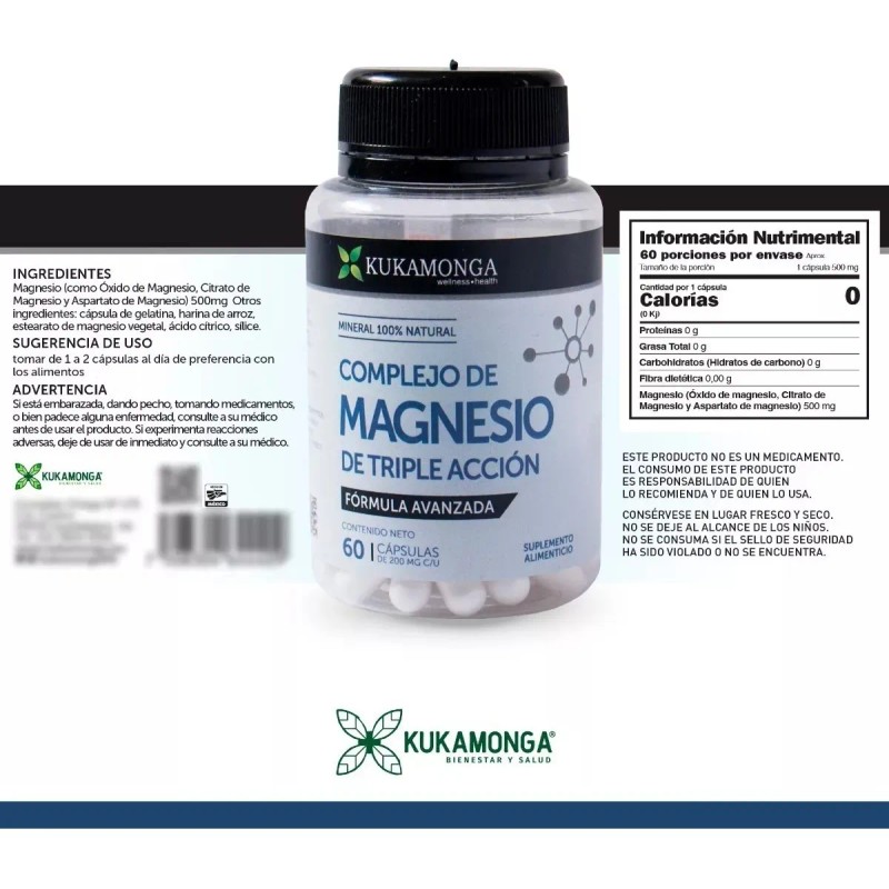 Complejo De Magnesio 60 Cápsulas De 500 Mg Magnesio Complex Sin Sabor