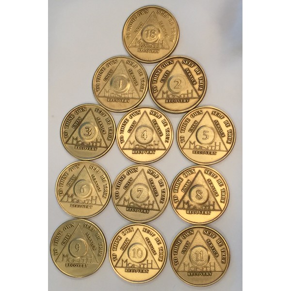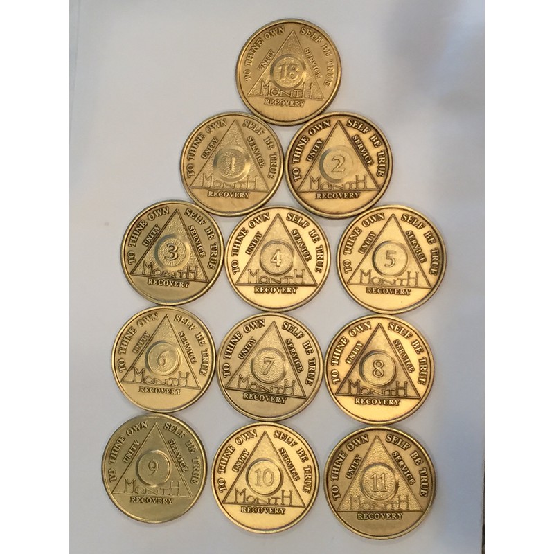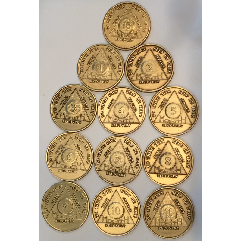 Complete Months Set (12 Total) Bronze AA (Alcoholics Anonymous) - Sober / Sobriety / Birthday / Anniversary / Recovery / Medallion / Coin / Chip