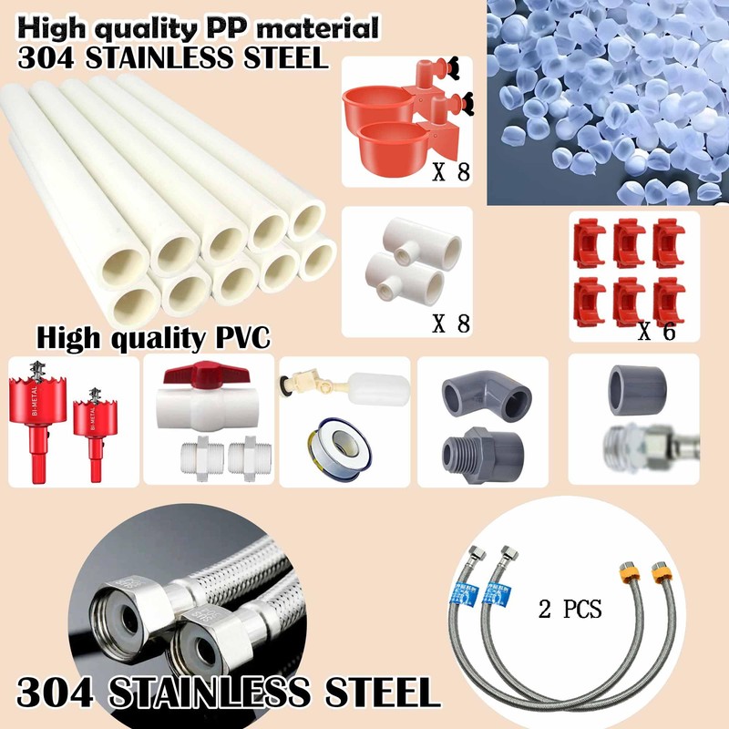 Complete Set Pipeline Automatic Chicken Waterer System(58 Accessories Included)Chicken Water Cups, Chicken Waters,Poultry Waterer,Chicken Watering System,with PVC Pipeline,Float Valve and Garden Hose