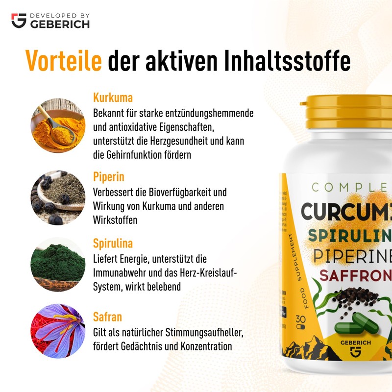 - Holistic support for health and energy: the formula combines curcumin, spirulina and piperine to promote overall well-being and vitality in everyday life.