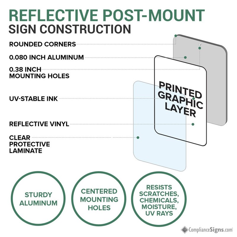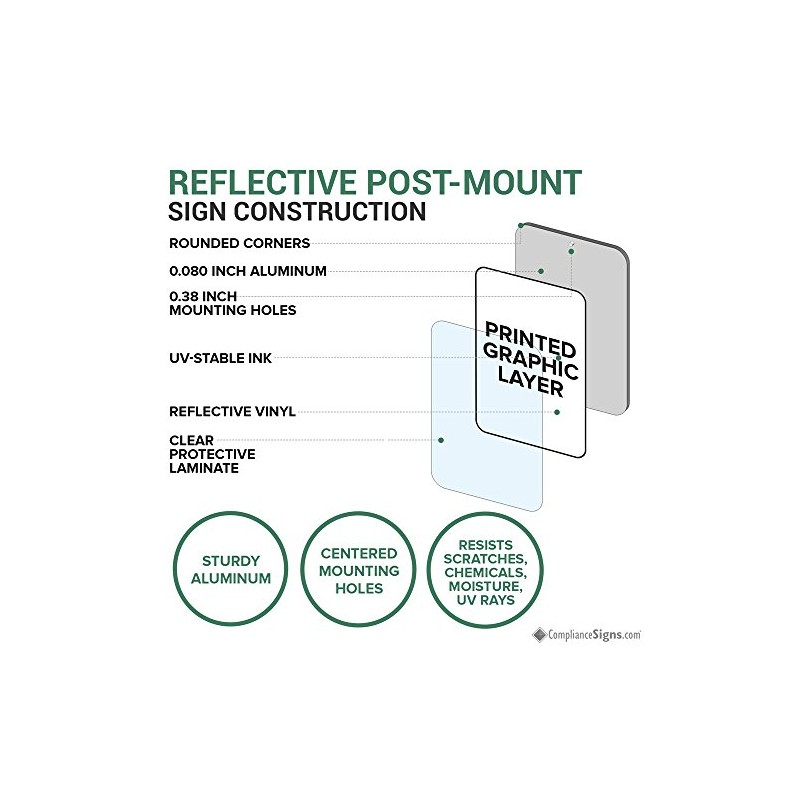 - Sturdy 80-mil aluminum has white enamel coating end engineer-grade reflective vinyl sheeting