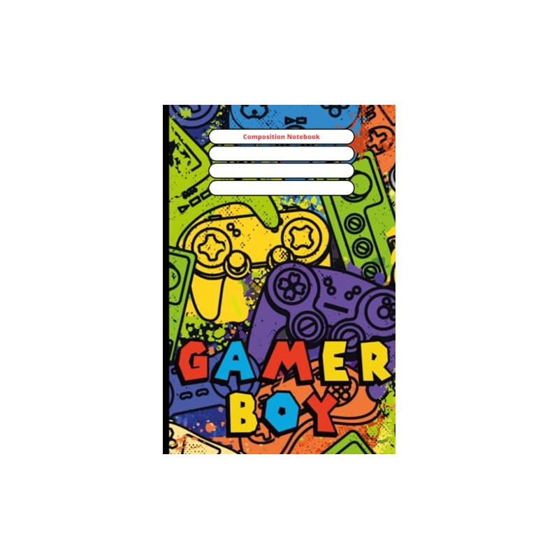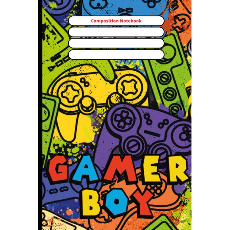 Composition Notebook: 108 pages wide ruled lined paper, for children who love video games with blue, yellow, pink, black, purple, green, take it to school or wherever you want, Ages 8-12.