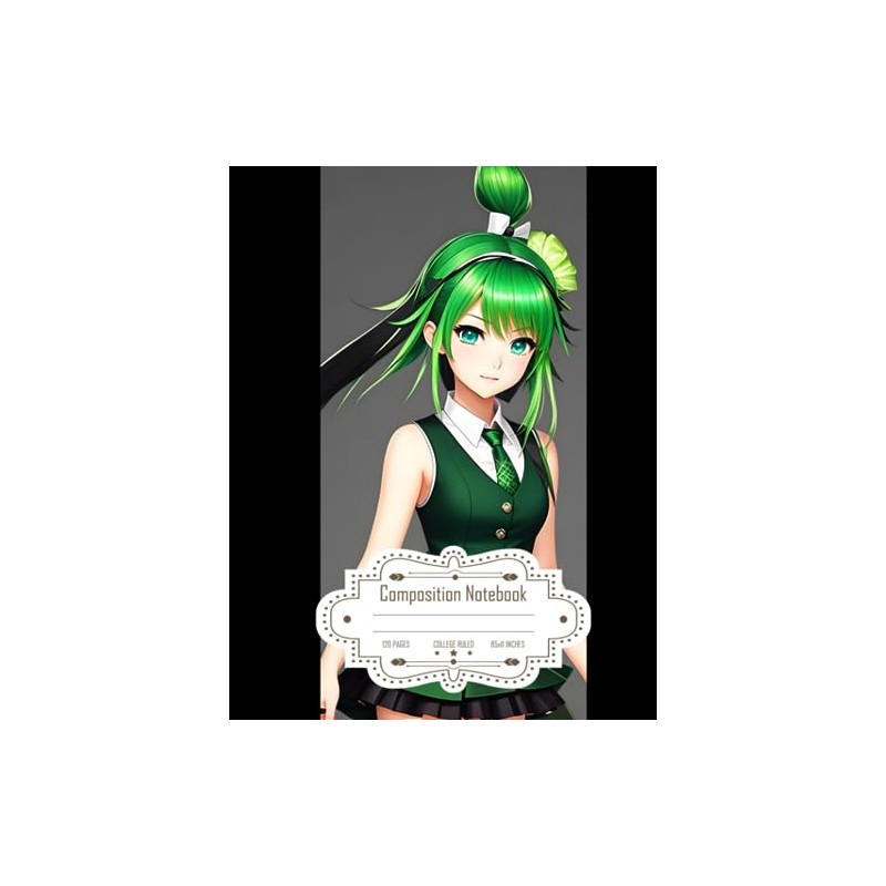 Composition Notebook College Ruled: A Girl with Emerald-Green Twin-Tailed Hairstyle, Holding a Green Scallion, Ideal for Writing, Size 8.5x11 Inches, 120 Pages