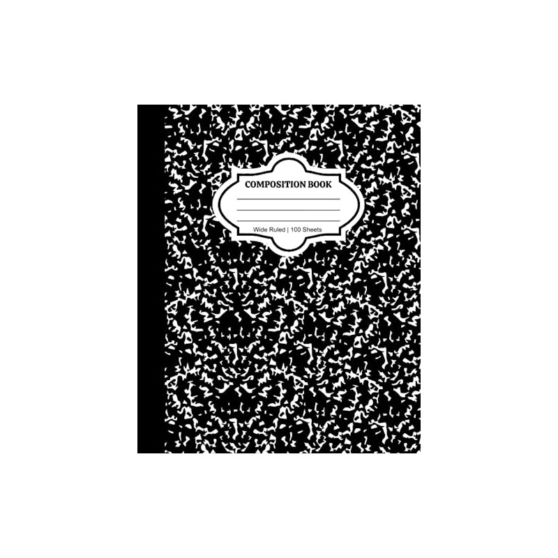 Composition Notebook | Wide Ruled | Paper Paperback Cover | 7.5” x 9.75“ 100 Sheets | Black & White Marble | School Supplies