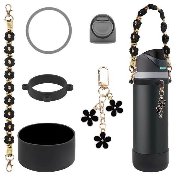 Comprehensive Compatible Owala Accessories Set: Silicone Boot for 24oz & 32oz Bottles, Water Bottle Handle Strap, Bottle Seal Ring, Replacement Stopper, Charms, Compatible Owala FreeSip (Black,24 oz)