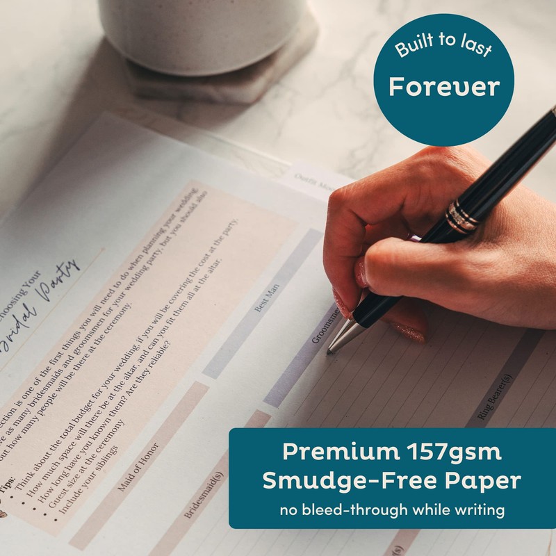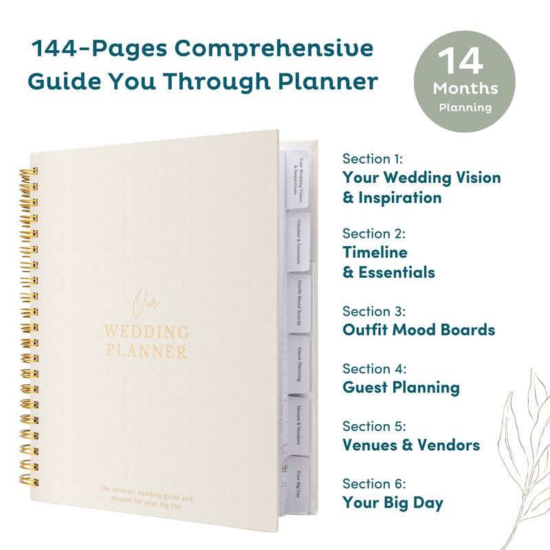 - Well-Thought-Out Contents - 144 pages of quality wedding planner book to help you plan your perfect day in a breeze. Large 9”x11” with elegant hardcover plus gold foil stamping. High-quality 157 gsm smudge-free paper, no bleed-through while writing.