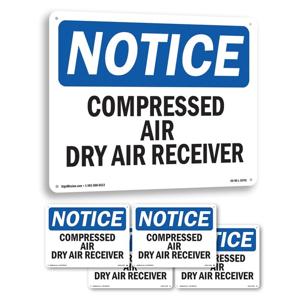 Compressed Air Dry Air Receiver OSHA Notice Rigid Plastic Sign 24 Inch x 18 Inch - 5 Pack