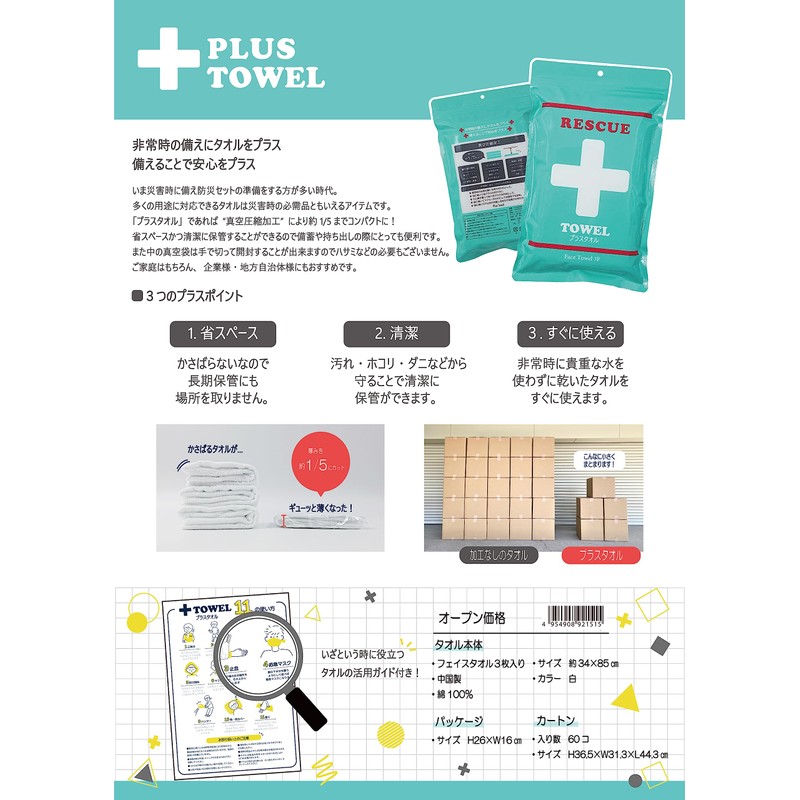 - Recommended for when you need to be prepared. This easy-to-use white towel is made in Japan with vacuum compression processing, and cut to approximately 20% thick. The thickness is about 0.6 inches (1.5 cm), making it convenient to carry. The zippered bag keeps dust and dirt out of the bag and keeps it clean