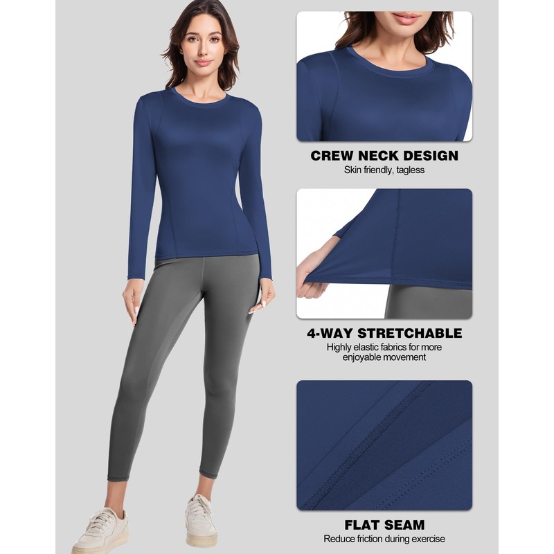Compression Shirts Woman Long Sleeve Athletic Workout Tops Cool Dry Sun Protection Baselayer for Gym Yoga Running Gear 4 Pack