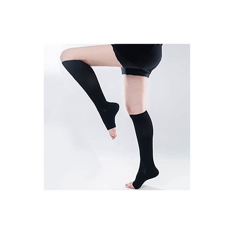 compression socks walkplus + compression socks while sleeping open toe socks office, Black