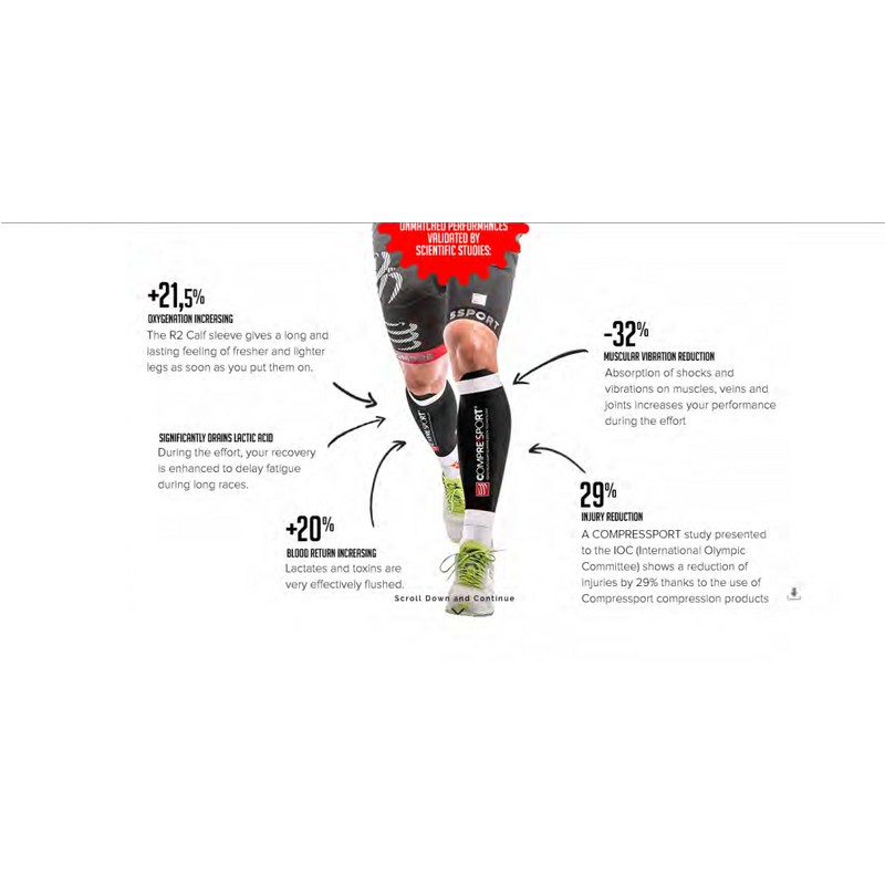 The R2 Oxygen completes COMPRESSPORT® range of calf sleeves and offers to pro athletes the most performing high-tech sleeves ever! On trail, triathlon or marathon tracks, performance, protection, comfort and freedom of movement will reach high levels.
