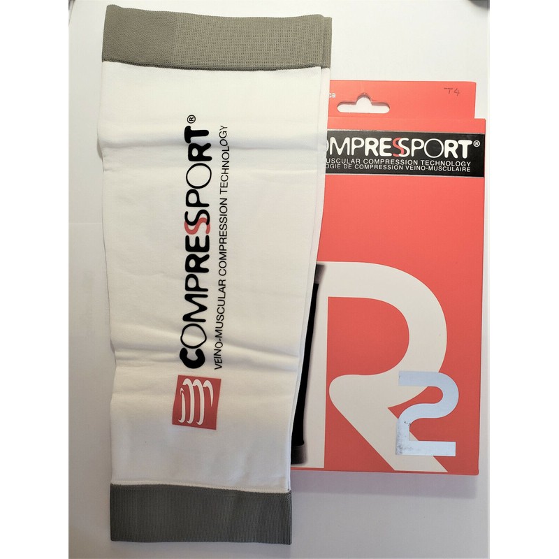 Compressport R2 Oxygen Graduated Compression Calf Guards White Support Sleeve.
