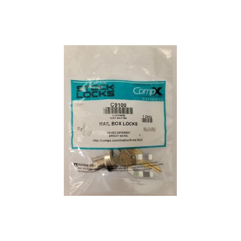 CompX C9100 Pin Tumbler Mailbox Lock, Bright Nickel, Keyed Different - 3 packs
