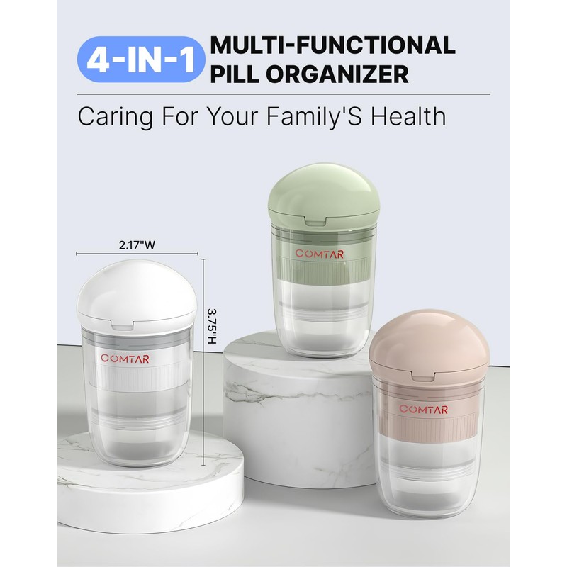 - 4-in-1 Multifunctional Design: Combines pill dispenser, crusher, dual-layer storage, and drinking cups. Suitable for travel, office, and daily usecompact enough to fit in purses or pockets.