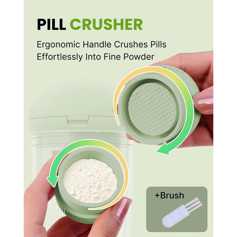 - 4-in-1 Multifunctional Design: Combines pill dispenser, crusher, dual-layer storage, and drinking cups. Suitable for travel, office, and daily usecompact enough to fit in purses or pockets.