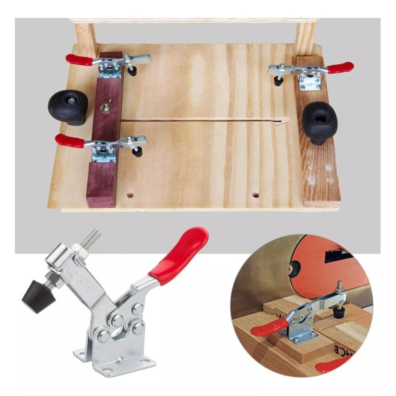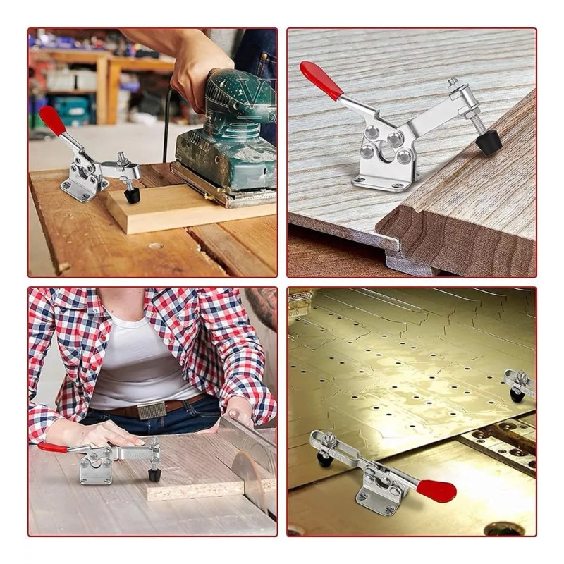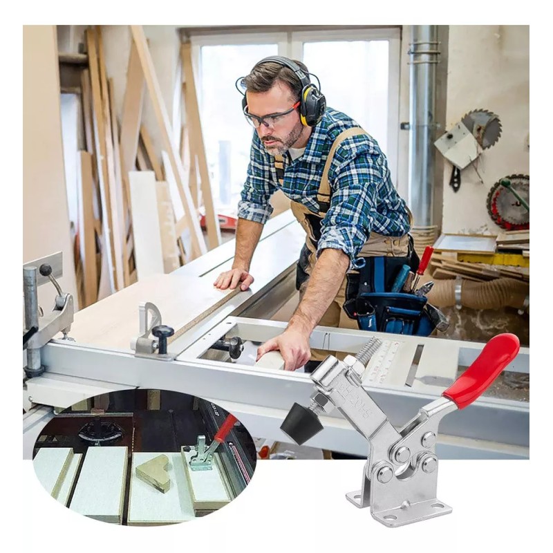 5. Asegura y libera la pieza de trabajo al instante con un ligero movimiento de la palanca. Cuenta con puntas de presión de goma ajustables y cómodas empuñaduras de goma.