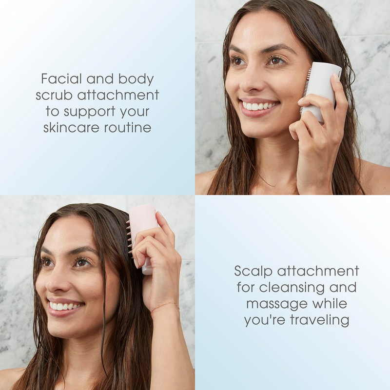 - Skin & Scalp Care Travel Bottles: Store your favorite soaps and enjoy a stimulating massage from brushes built onto the bottles.