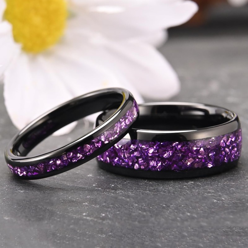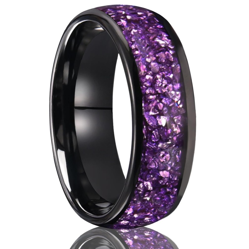 - Fashion appearance: Black tungsten carbide rings 8MM/4MM inlaid with amethyst Beautiful and high polish