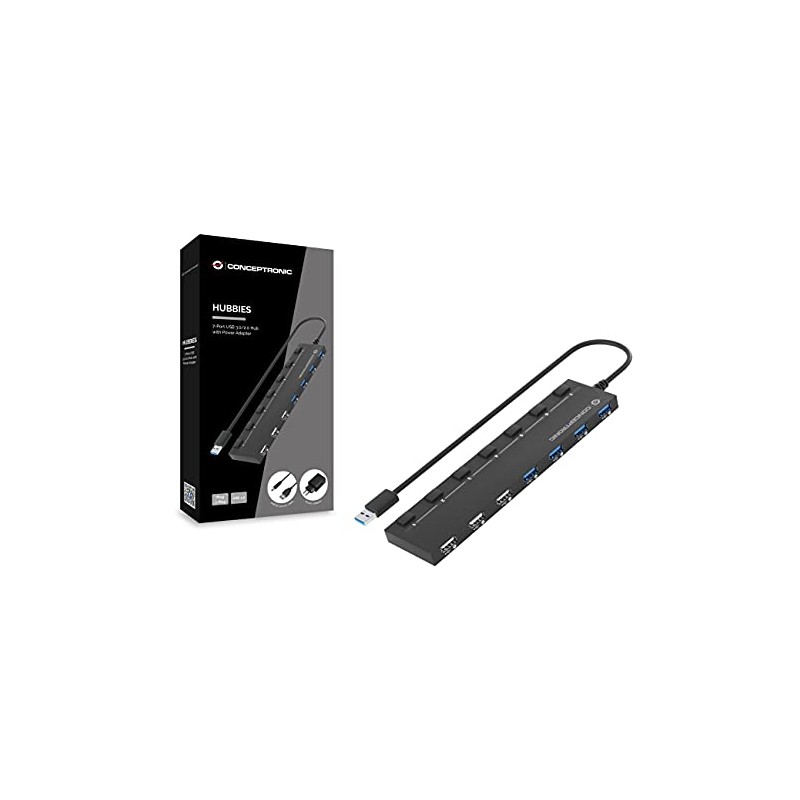 Conceptronic HUBBIES09BP USB Hub 7-Port 4x USB 3.0 3x USB 2.0 with Power Supp...