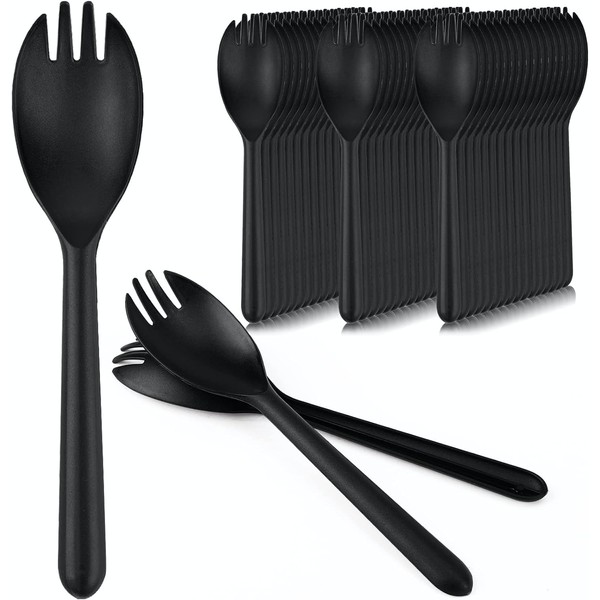 - Concession Essentials 125 Count Plastic Disposable Sporks Black Medium Weight Disposable Silverware Plastic Cutlery Spork.