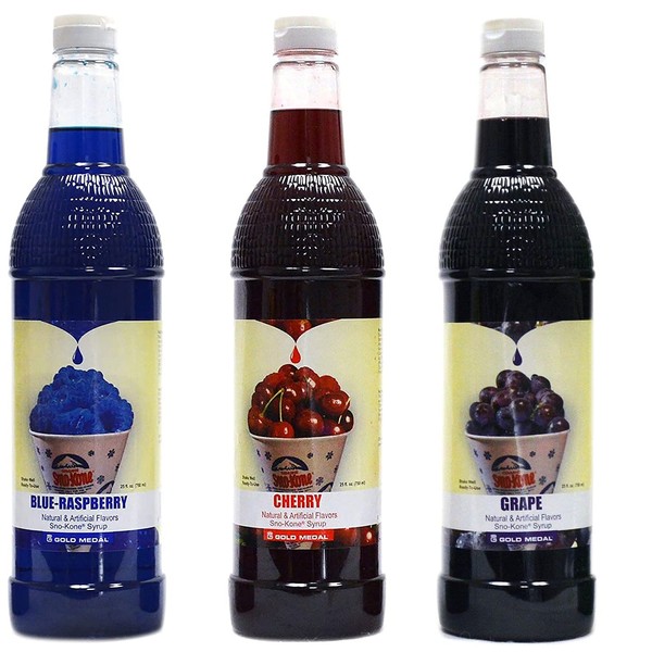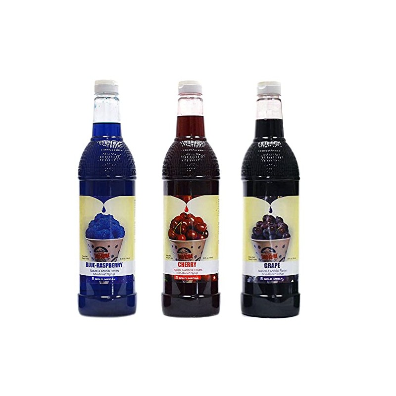 - Package includes one of each flavor Cherry, Grape and Blue Raspberry. Each bottle is 750ml or 25 fluid ounces .