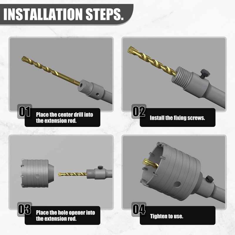 Concrete Hole Saw (160mm丨6-19/64'') with 220mm SDS Plus Shank and 2 Dust Catchers - Ideal for Concrete, Cement, Brick, Stone, and Wall Drilling