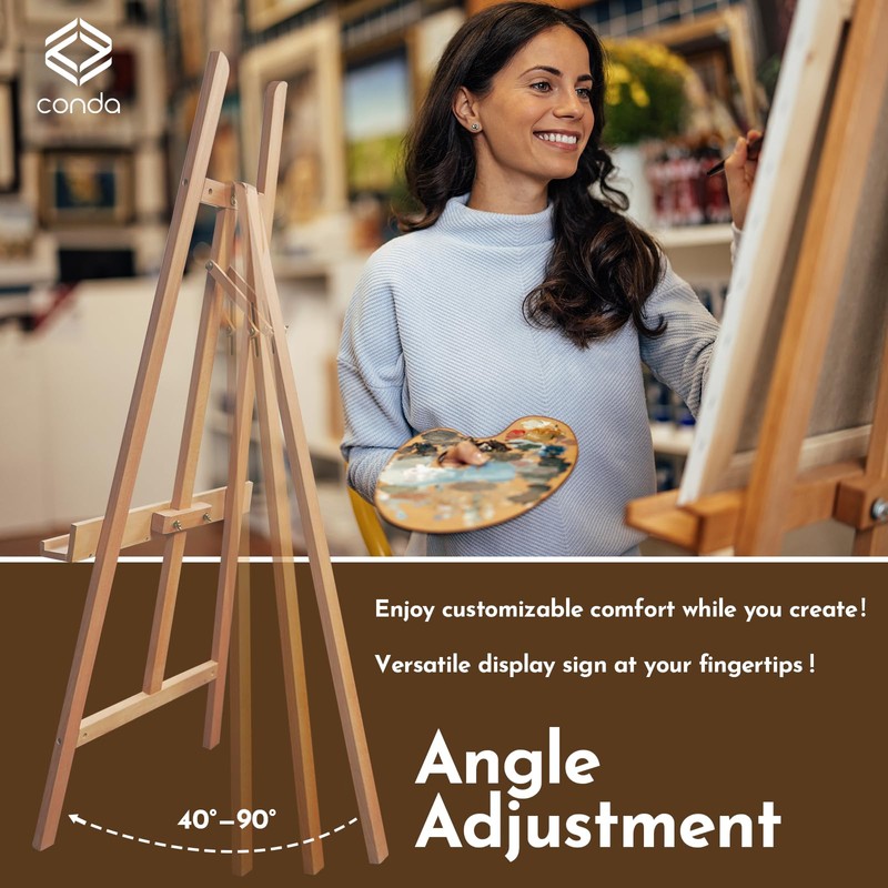 CONDA A - Frame Wooden Display Easel, Adjustable Beechwood Artist Easel Holds Canvas up to 60", Inclinable Floor Easel for Display, Painting, Drawing, and Artwork, Perfect for Adults