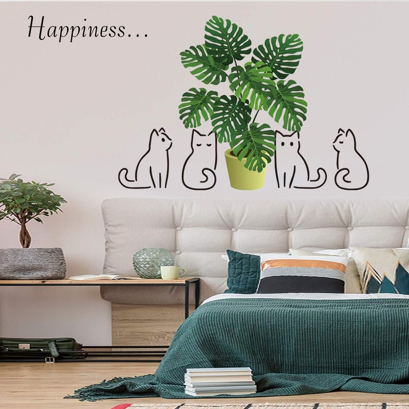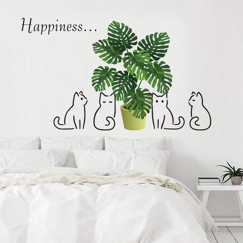 Condessacity ウォールステッカー 猫 植物 おしゃれ 北欧 ウォールシール 観葉植物 鉢植え ウォールすてっかー 蝶 鳥 モンステラ 鳥かご 壁に貼る 壁シール 剥がせる ウォールペーパー DIY wall sticker decoration