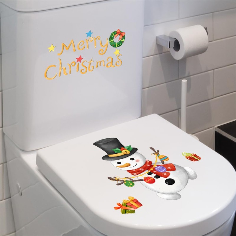 Condessacity トイレ ウォールステッカー おしゃれ 便器 シール 英語 クリスマス 可愛い 雪だるま ギフト クリスマスツリー トイレの蓋 ステッカー スノーマン 雪の結晶 フルーツの枝 松ぼっくり バスルーム ステッカー ウォールシール 防水 トイレ シンク 飾り 剥がせる toilet stickers decoration