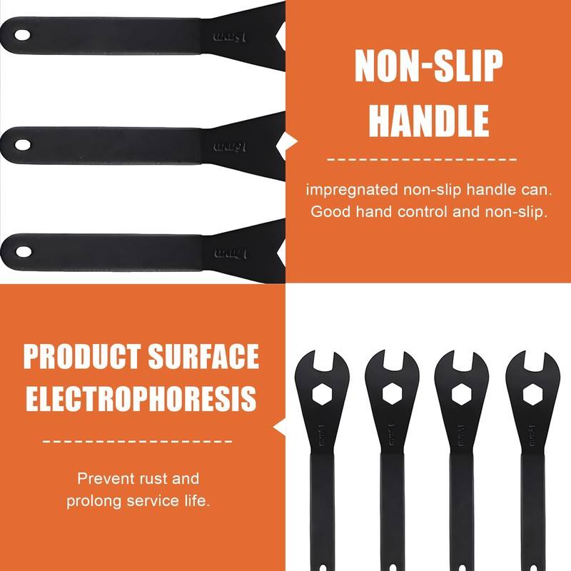 1.ERGONOMIC NON-SLIP HANDLE: The cone wrench has a non-slip grip that guarantees safe handling. Thanks to its light weight and compact size, it is easy to carry and is therefore ideal for travel or quick repairs.
