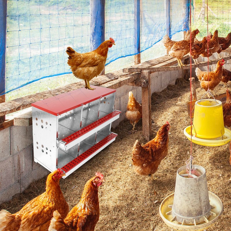 - Double Tier Chicken Nest Box: Double tier chicken nest boxcan better manage your chickens' activity space and make your chicken coop less crowded. Pre-drilled vents in the partitions promote air flow in the coop.