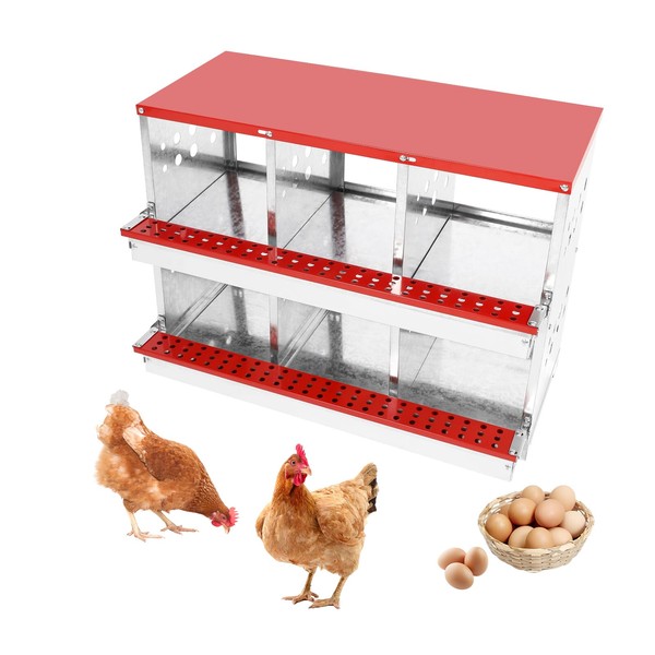 Confote Chicken Nesting Boxes,6 Compartment Nesting Boxes for Chickens,Galvanized Steel Chicken Laying Boxes with Lid Cover