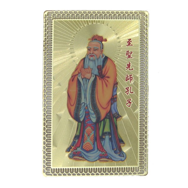 This beautiful handy pocket sized carrying along education talisman card has image of Confucius on one side and Chi Lin with book on the reverse side. Confucius is the Father of Scholarly Luck. He, who was a Chinese thinker and social philosopher in 551 BC - 479 BC, is the ancestor of Confucianism. In ancient China, all children were required to pray Confucius at their first school day in order to have better education and smart mind. Carrying such Confucius Education Talisman Card is good for study/work. On the reverse side, one chi lin bringing book is the symbol of good education. It has the Chinese words: Smart Studying and Advanced Education. You can either keep this handy talisman with you or hang it on your living room's wall for eduction. The dimension of the talisman card is approx. 3 1/8" x 2". It is made of brass. See more Talisman Cards