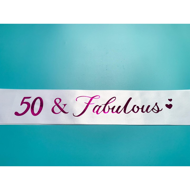 - [50th Birthday Sash]--It's your special day and we want you to look amazing! Perfect for your Birthday Party Supplies and Decorations, with this uniquely designed sash with foil letter "50 Fabulous" message you will feel confident knowing no others in the room will have your kind of sash.Wihte Hot Pink