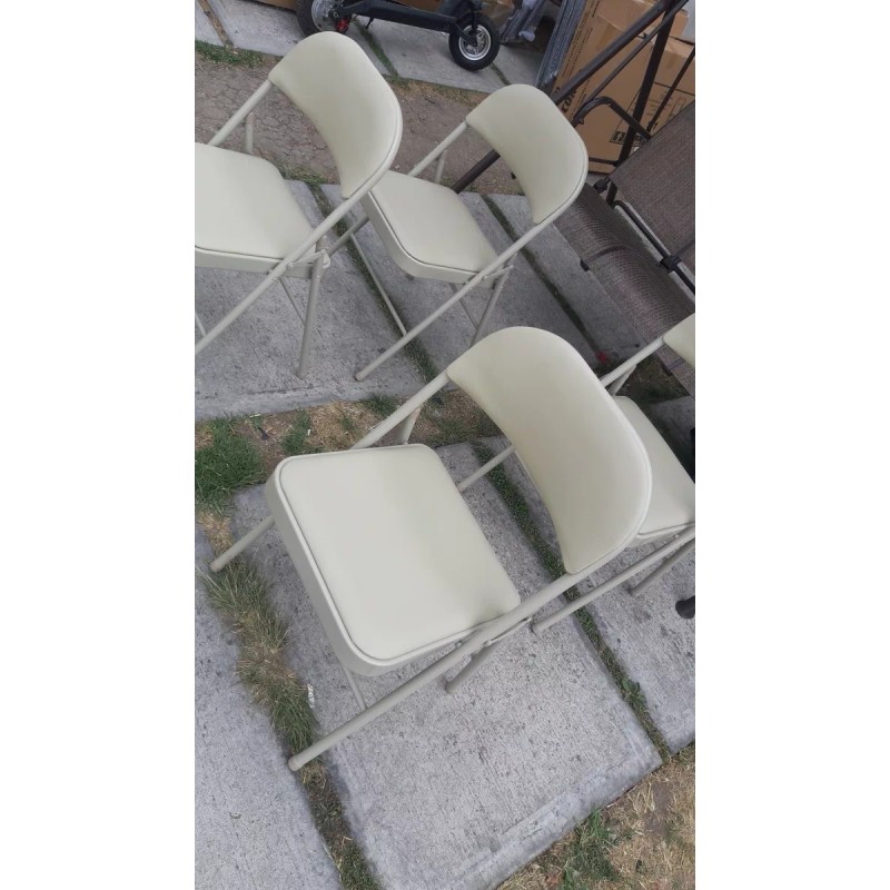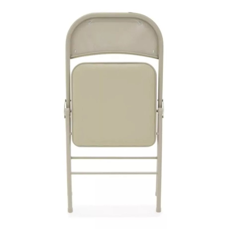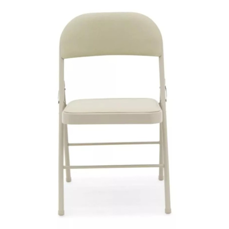 Las sillas plegables pueden usarse en el comedor o en la sala de estar para tener más asientos. Se pueden doblar y almacenar de forma conveniente. Su diseño sin brazos ofrece un soporte cómodo. Tiene una estructura hecha de acero. El asiento asi como el respaldo estan acolchados con tapicería color Beige que complementa maravillosamente cualquier decoración.