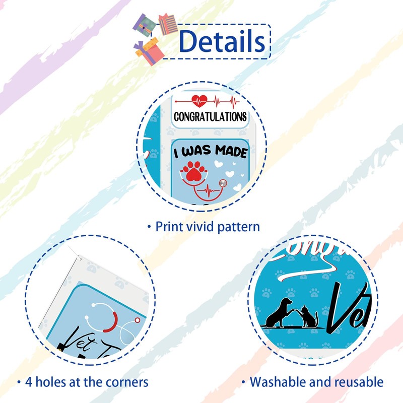 Congrats Vet Backdrop Banner - Doctor Grad Graduation Party Background - Med School Veterinarian Graduation Party Photography Background Decoration - 6 x 4 Feet