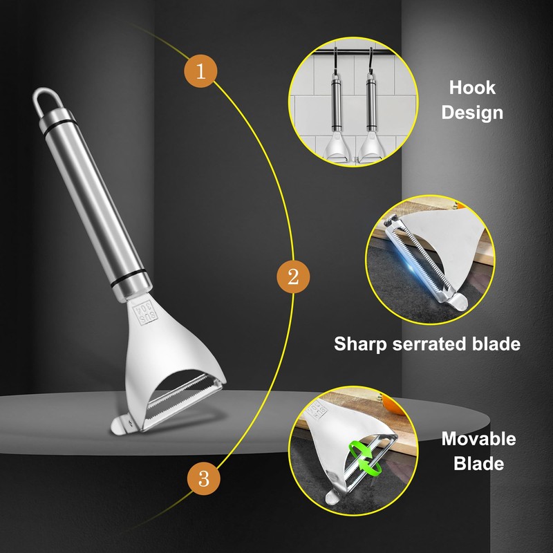 - Durable Double Edge Serrated Blade: Say goodbye to your rusty old vegetable peeler and upgrade your kitchen setup with this grade stainless steel peeler