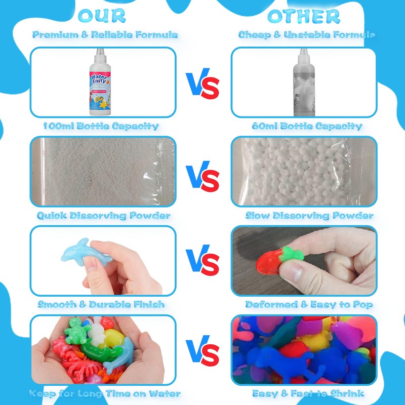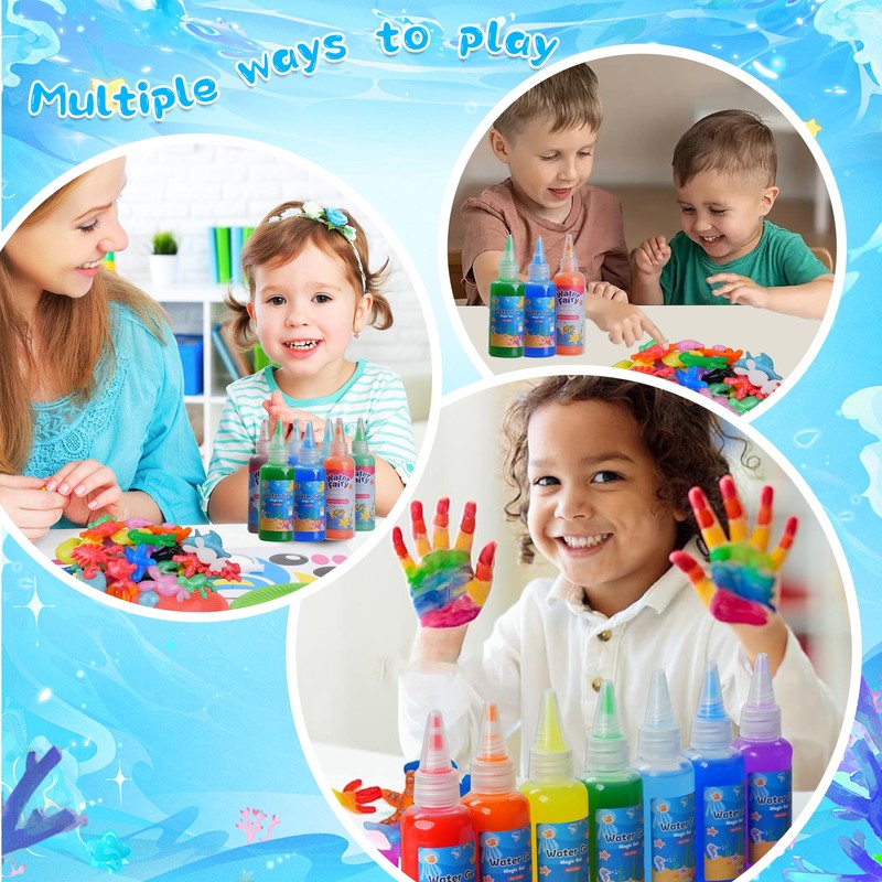 - 【Upgrade】: New Powder that dissolve in water faster than before, Color Gel from 60ml upgraded to 100ml larger capacity to play longer the magic water elf toy and the color gel ingrendient upgrade too, now it can absorb more water and become more puffy and shrink less if keep on water