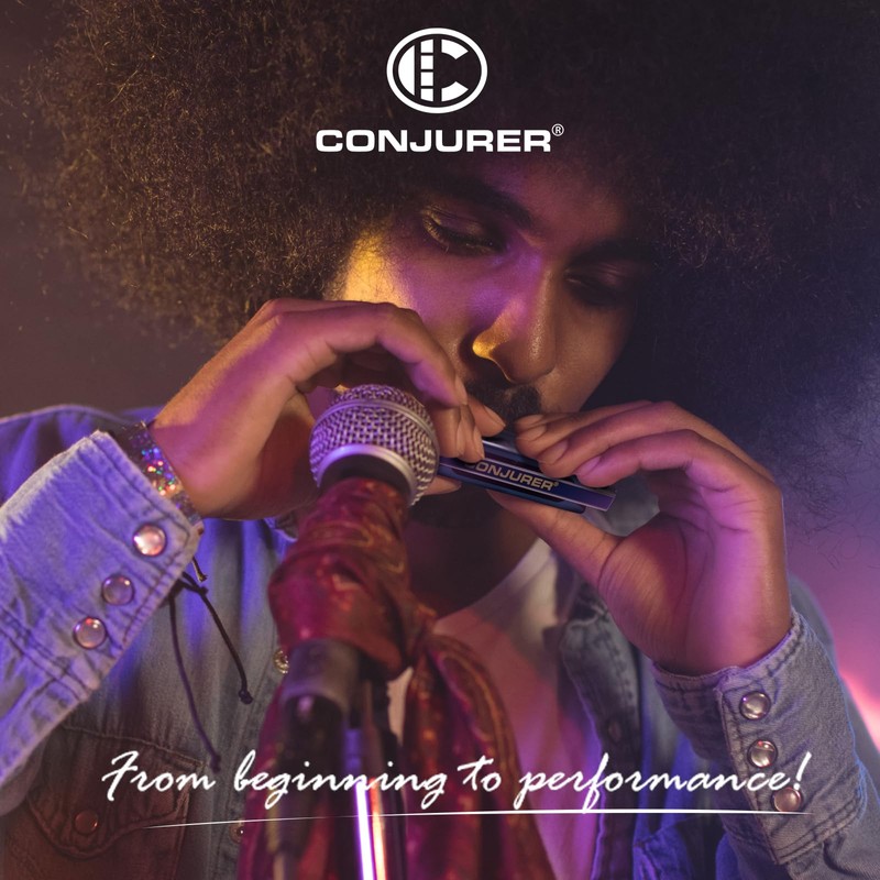 - For all beginners, whether adults or children, the CONJURER Blues 10 Hole Diatonic Harmonica with 20 tones is a good choice. Each harmonica is equipped with a cover plate made of food grade stainless steel and ABS resin to ensure its quality and safety. A cleaning cloth and instruction manual are included in the matching case for each harmonica. Anyone who wants to learn to play harmonica would be happy to receive a gift.