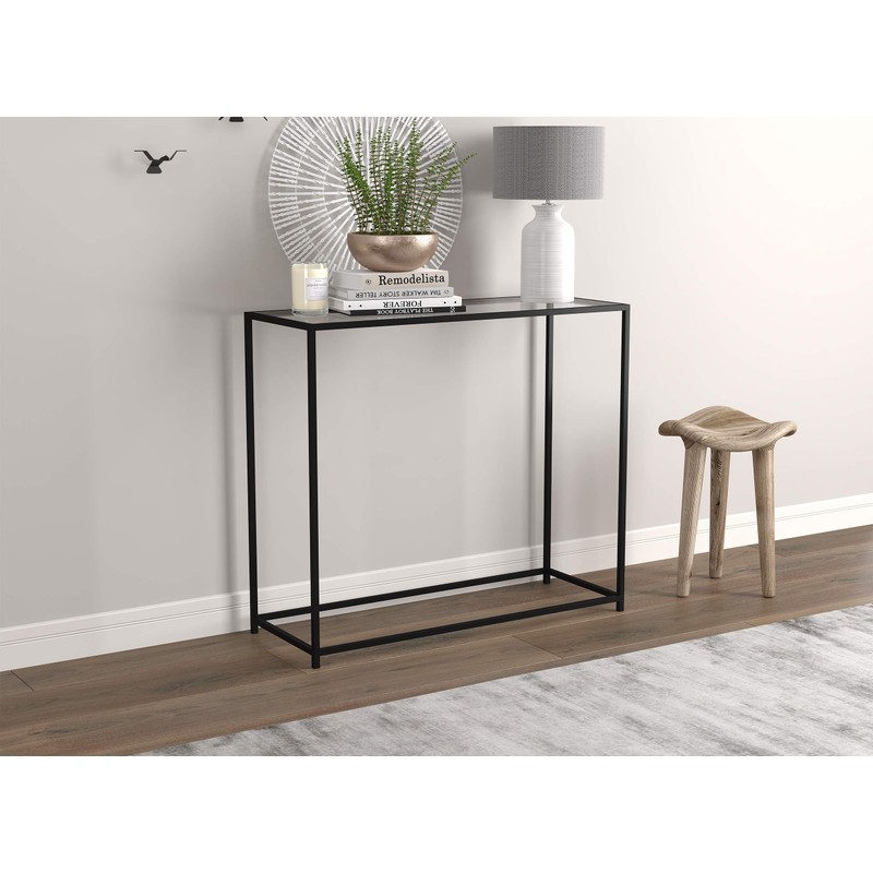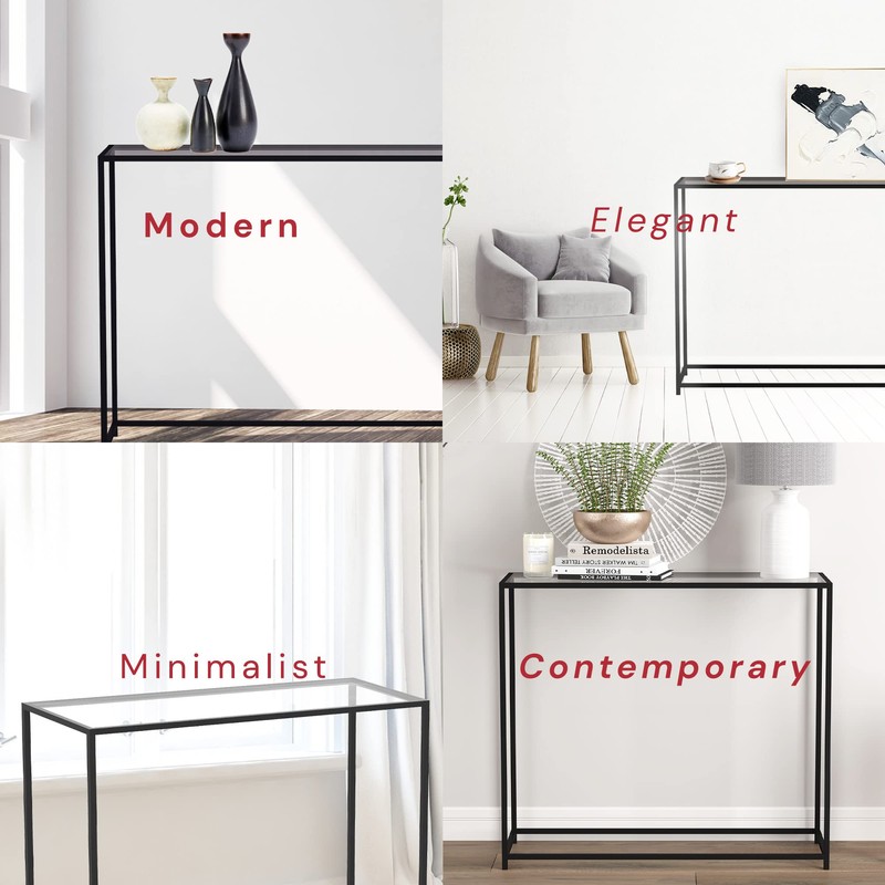 Safdie & Co. - Metal Console Table with Glass, Black Console Tables for Entryway, Use As Doorway Table, Narrow Bar Table, or Accent Furniture for Decorating Foyer, 12 x 28 x 31 Inches