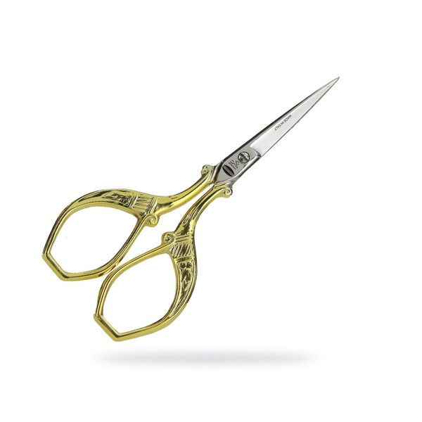 Floral embroidery scissors  straight blade  of. 9 cm.  Steel shank  Nickel-plated  24 K gold  Made in Italy  quality mark 'Premana, ideal for play work of embroidery and sewing, carbon steel, 3 1/2  cm. 9, a line of products by the highly competitive price; Produced in large scale made in Italy with the best carbon steel nickel coated, using new production systems that allow you to greatly reduce the costs, while providing a great level of quality.