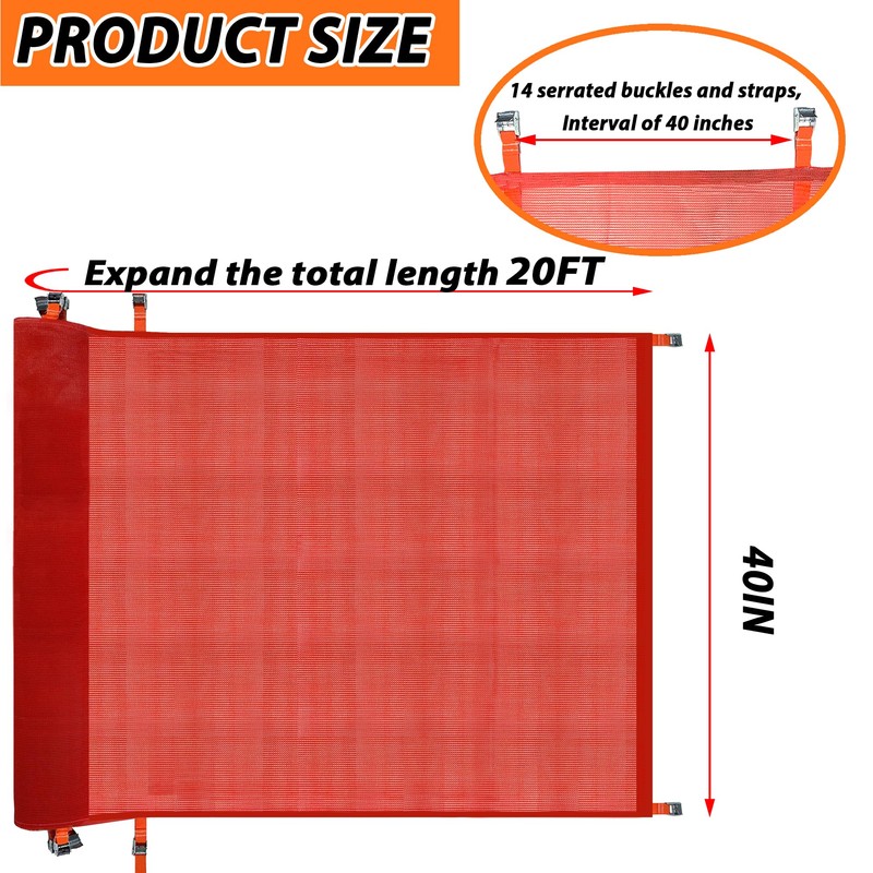 Construction Safety Debris Netting with 14 Tapes & Buckles - 20ft x 40in, Orange Fire Retardant Pump Jack Safety Net, Scaffold Safety Netting Rolls Scaffold Net Enclosure