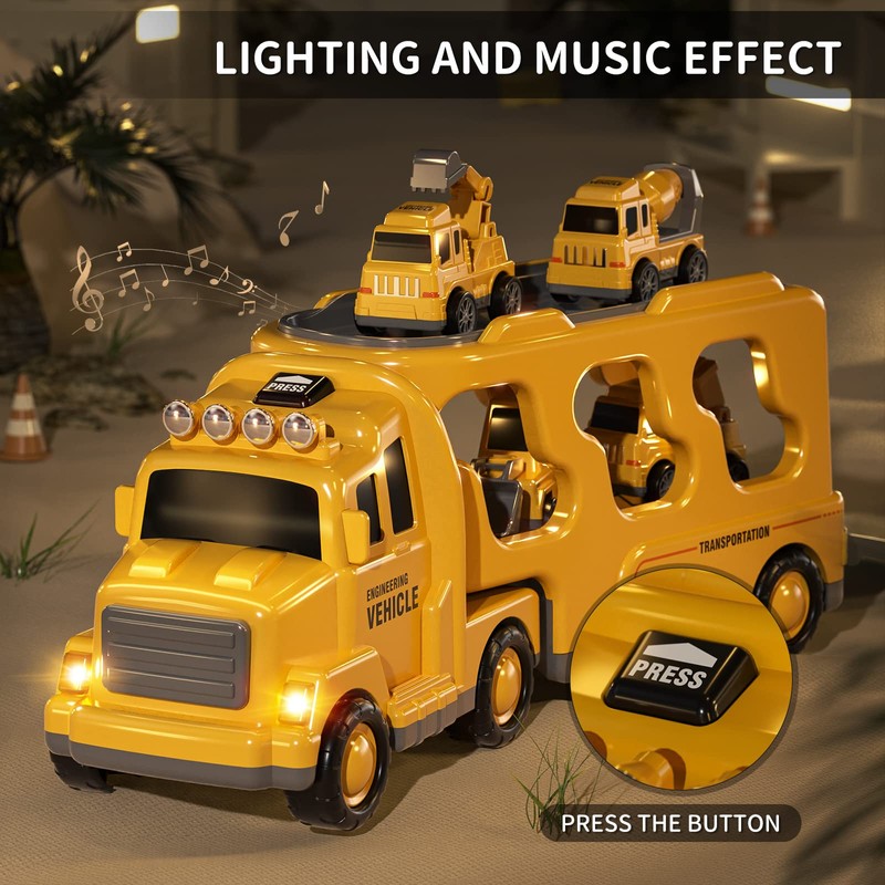 Construction Trucks Toddler Boy Toys Cars for Toddlers 1-3 - Kids Toys for 3 4 5 6 Years Old Boys Transport Vehicle Carrier Truck, Car Toys Set for Age 3-9, Christmas Birthday Gifts