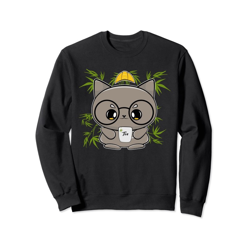 Construction Worker Cat Anime Feline Bubble Tea Sweatshirt