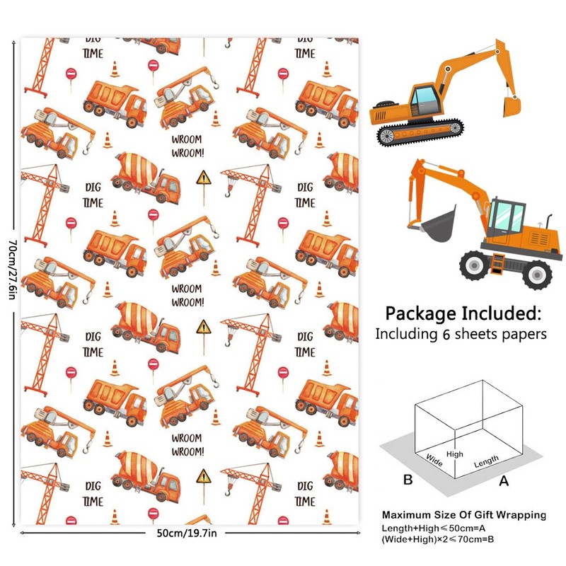 - 👷【Package Included】: Package Including 6 sheets of paper in 6 road under construction designs wrapping paper, perfectly fit for packages in different sizes from small to medium. these patterns of gift wrapping paper are for kids boys men women children and girls racing car theme, but also for adults or birthdays.