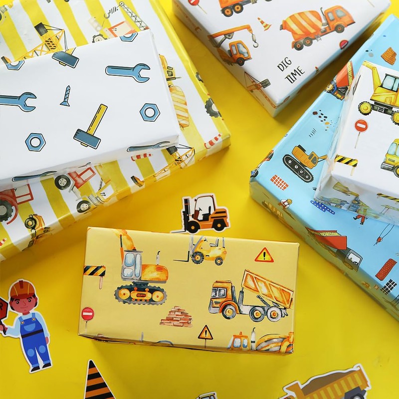 - 🚧【Road Under Construction Trucks and Diggers Design】: Patterns include diggers bulldozers mixers dumper trucks and more.Make your little builder's birthday gifts look like a fun party with this Construction Trucks and Digger-themed wrapping paper!