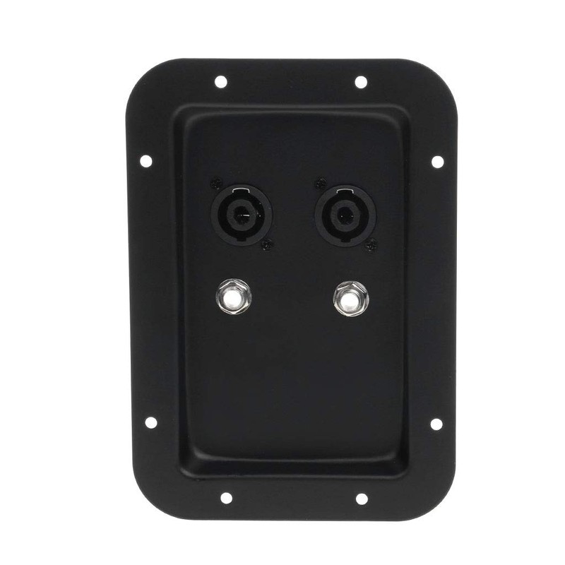 The audio jack plate features two 1/4" connectors and two speakon inputs.
