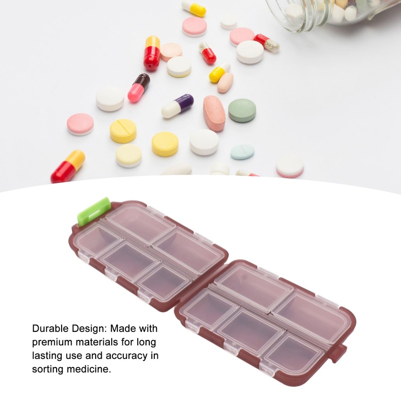 - 7 DAY ORGANIZER: With 10 compartments, this case is designed to help you maintain a life by providing a convenient and portable solution for your weekly medication.